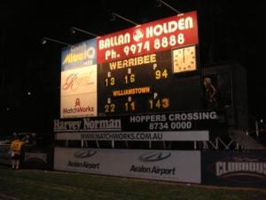 New season, new scoreboard. Werribee Football Club unveiled its new scoreboard in the first round of the 2011 VFL season. The scoreboard’s debut on Saturday April 2 saw the Werribee reserves defeat Williamstown by eight points. Alas, in the main match Williamstown defeated the home side by 51 points, with Western Bulldogs veteran-turned-rookie Mitch Hahn kicking six goals.