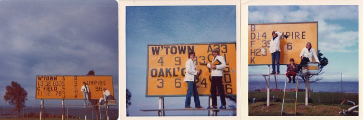The 1975 scoreboard featured big black numbers (painted by Geoff and his Dad) against yellow background. The board now has yellow numbers against black.