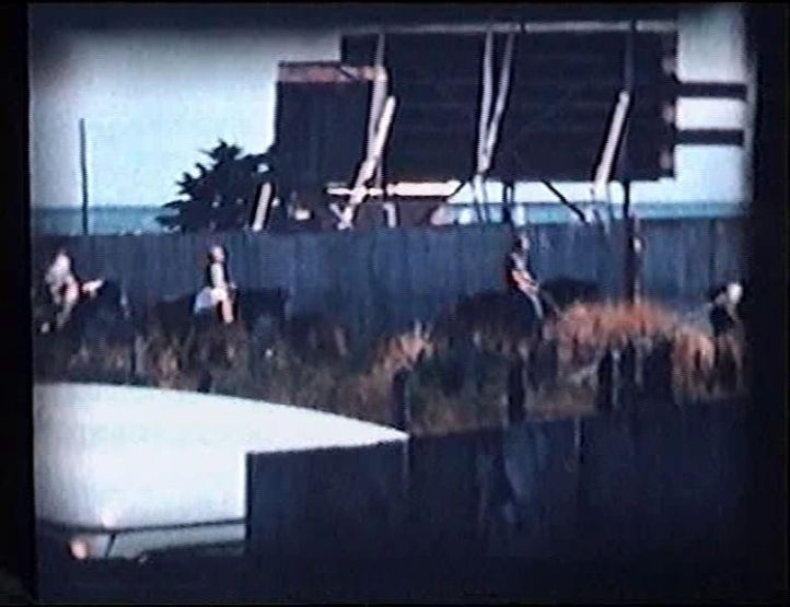 The above images are from a van Wyngaaden family home movie from the late 1950s or early 1960s, back in the days when people rode horses around Williamstown. On December 7 1961 The Argus newspaper reported: ‘The Press box and a storeroom at the Williamstown Cricket Ground were destroyed by fire early on Sunday morning. The fire was discovered at about 1.14 a.m. Firemen were hampered by a shortage of water. A tanker was brought from Newport to fight the blaze. Police are investigating the possibility that vandals may have started the fire. Recently in a strong wind the scoreboard did a back somersault and crashed to the ground.’