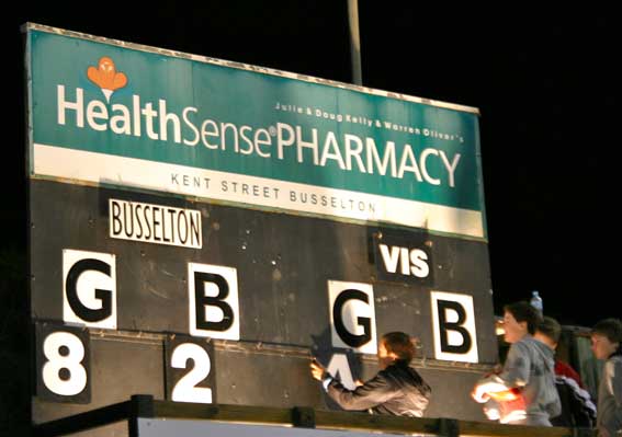 The Busselton Magpies play quite a few night games in the South West Football League in Western Australia and they’ve put in lights this season to illuminate the scoreboard.