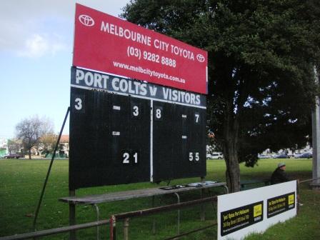 I popped into the Port Colts ground at Murphy Reserve halfway through the second quarter of the reserves game against Altona. The bloke looking after the scoreboard was only doing half a game because he was playing in the seniors for Port Colts.