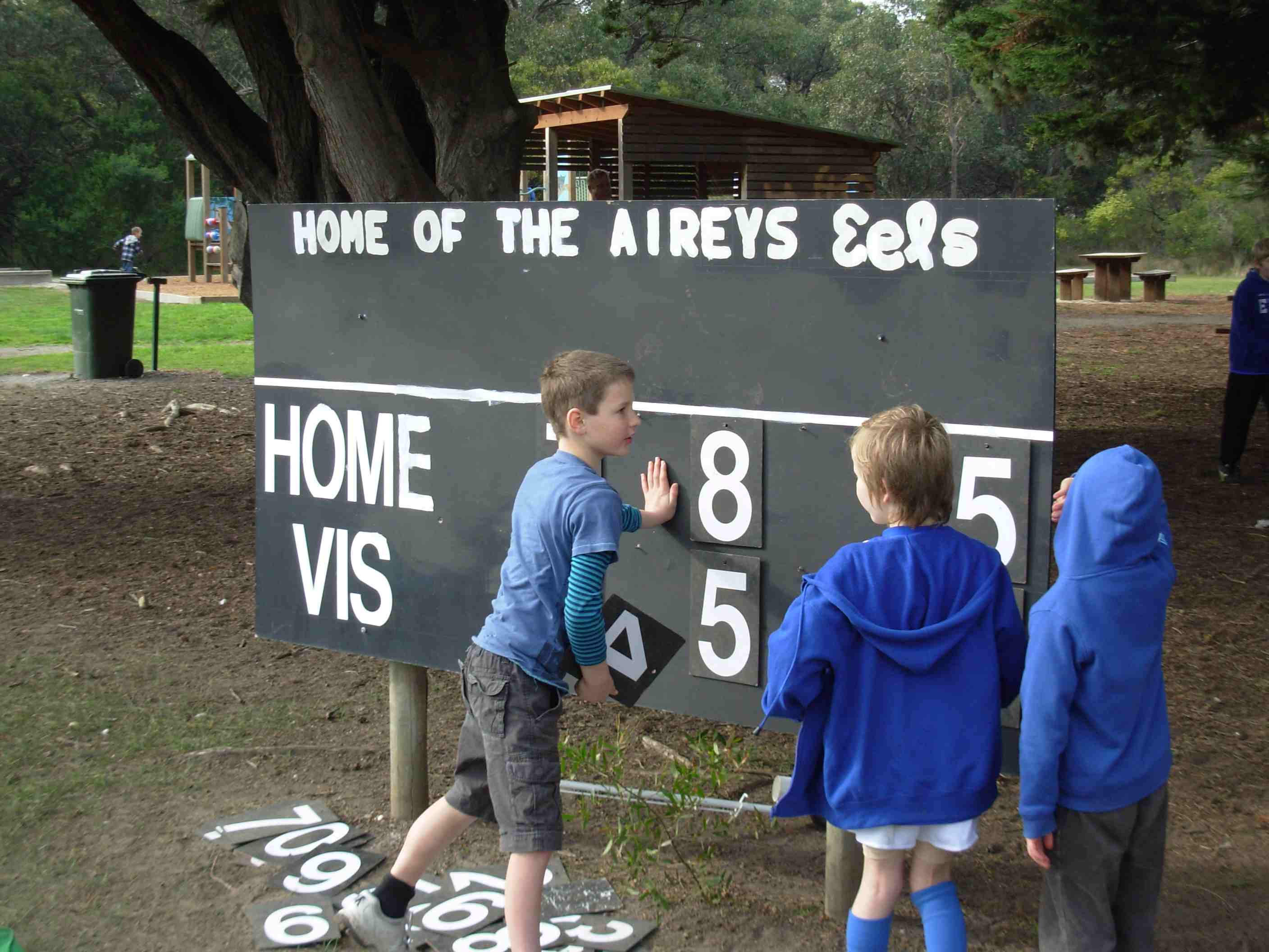 The scoreboard at Bellbrae Reserve was made by builder Paul Leonard and real estate agent Dave Maher on the eve of the Aireys Eels very first game in April 2006.
