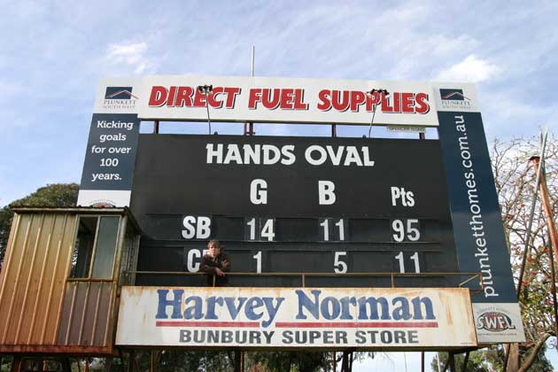 Kody, the scoreboard attendant at Hands Oval, has heard stories of rocks being thrown at the scoreboard during games in the past but it hasn’t happened to him yet. Something else hasn’t happened too. Asked if he’d made any mistakes with the score the laconic South Bunbury junior simply said, “Not yet.”