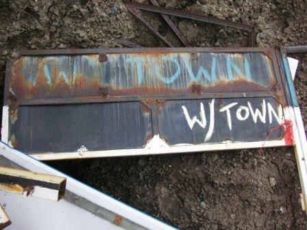 The Williamstown nameplate, seen here lying face-down in the dirt, was welded/soldered/rusted on. No south-westerly gale was going to budge it. But progress, that’s another thing.