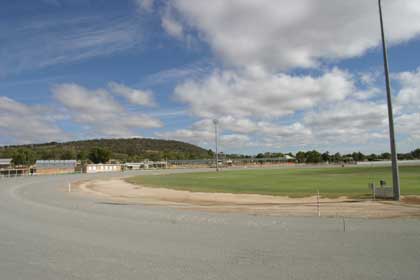 The oval is surrounded by a trotting track and is part of an expansive showgrounds complex.