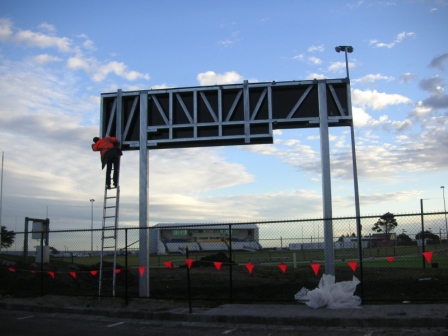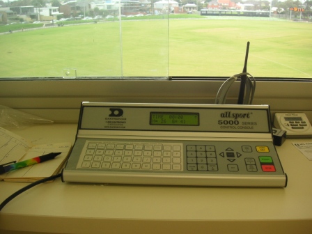 The scoreboard is operated from the new-look W. L. Floyd Pavilion, from the right hand room in the middle of the top level (above the coaches’ boxes).