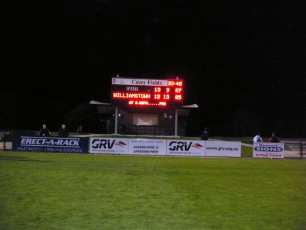 The scoreboard seems easier to read at night than during the day. In the score above, from round one, the Scorpions’ seconds got a hammering from Williamstown but, below, the seniors won a tight night game.