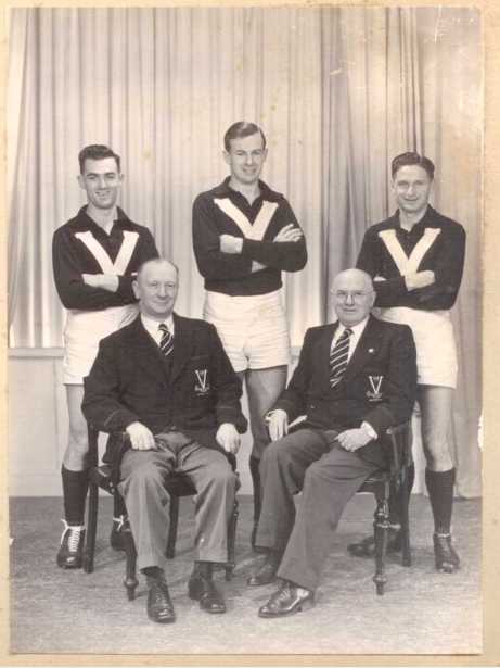 Bill is seated on the left in this 1953 photograph, with some handy Bombers behind him – Jack Clarke, John Coleman and Bill Hutchison – and long-time secretary Bill Cookson.