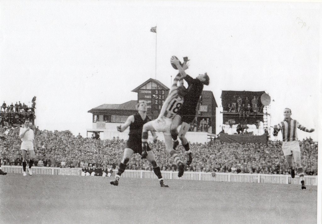 Some of these photos are just fantastic, in particular the one where Hugh Mitchell is going up for a mark with the old scoreboard in the background. Love the pic from the VFA grand final also…do you know if it was a curtain raiser to the Division 1 GF or were they played on seperate days? Not that it really matters!