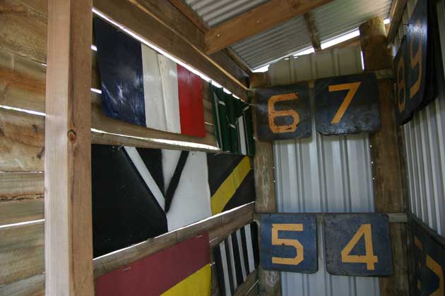 1. The photo inside the scoreboard, with the “guernseys” hanging on the wall, is one of my very favourite scoreboard photos. Well done. I was at a game at Lauderdale (Tas) on Saturday. The scoreboard is brand new and characterless (electric) but I wish I had taken the camera to get a shot for you anyway. Lauderdale belted Hobart, who are going out of existence at the end of this season.