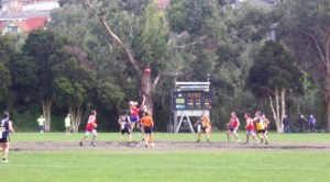 September 15, 2012 Vin Maskell Superules The big men fly (Beaconfsfield int he gold and blue, Williamstown in the red).