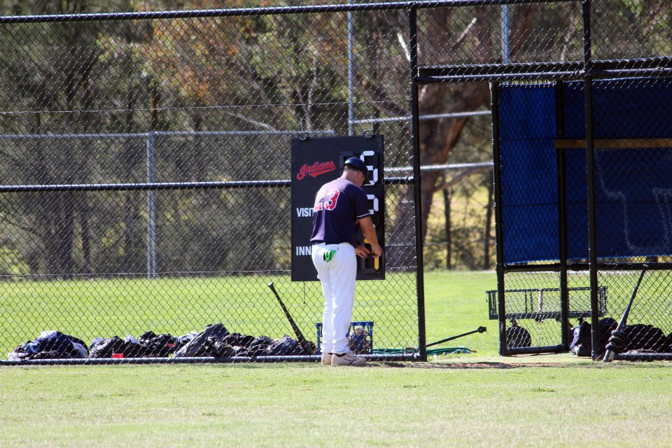 Welcome to Scoreboard Pressure’s first baseball photos, courtesy of Glenn Dawson. The photo above was taken at Narrabundah Ballpark and is from a game between Canberra Cavalry and Perth Heat. Note Glenn’s sharp-shooting in catching the outfielder with antennae (or horns?) sprouting from his cap.