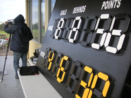 This was my view of the scoreboard at W.L.J. Crofts Reserve when I was doing the scores for the Williamstown – Northern Blues development game in early August 2012. (We don’t call the ‘twos’ the ‘reserves’ anymore.)