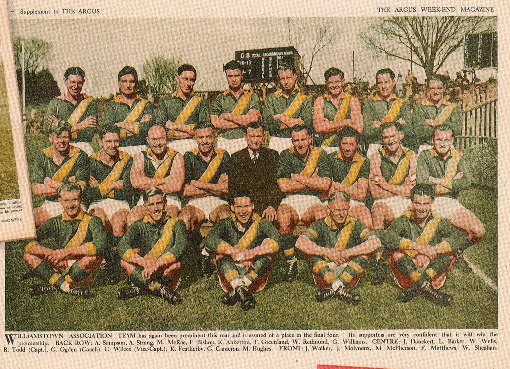 The photo caption begins: ‘WILLIAMSTOWN ASSOCIATION TEAM has again been prominent this year and is assured of a place in the final four. Its supporters are very confident that it will win the premiership…’