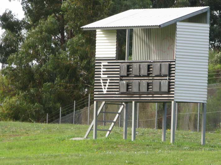 As I was leaving I saw another old scoreboard leaning against the pavilion wall, precariously close to the bins.