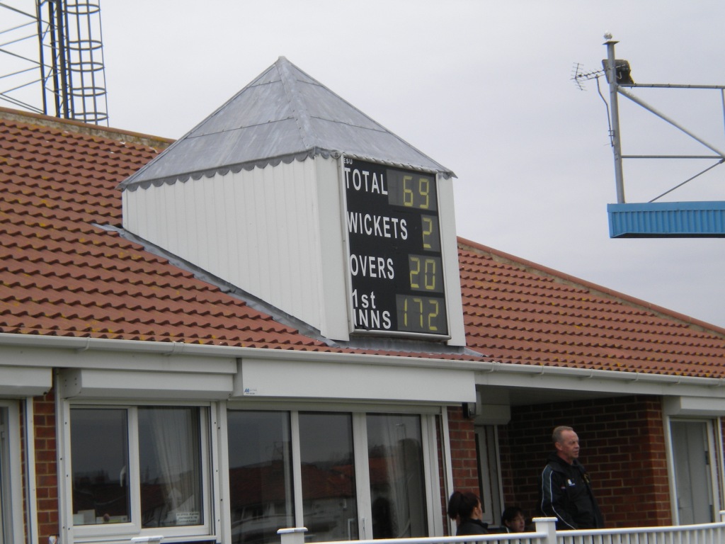 Australian visitor Julie Pollard kindly took these photos on Saturday 13 April during a friendly pre-season game between home team Whitby and Illingworth. She found two scoreboards at the ground, plus a very helpful committee member, who informed Julie that Whitby play in one-day 40-over leagues due to regular wash-outs and the distance between clubs. (Illingworth to Whitby, for example, is 140 kms as the crow flies, much further on winding country roads.)