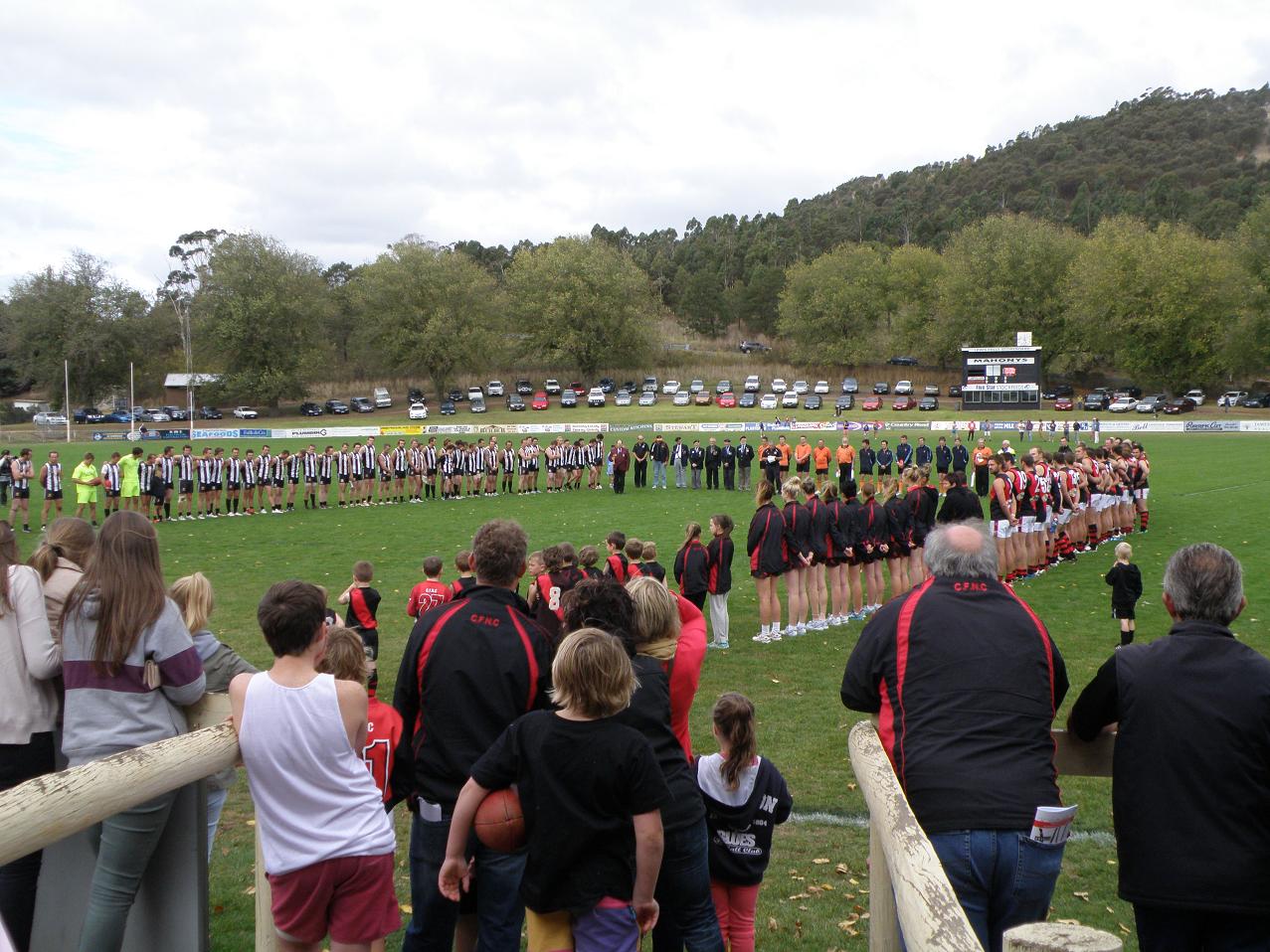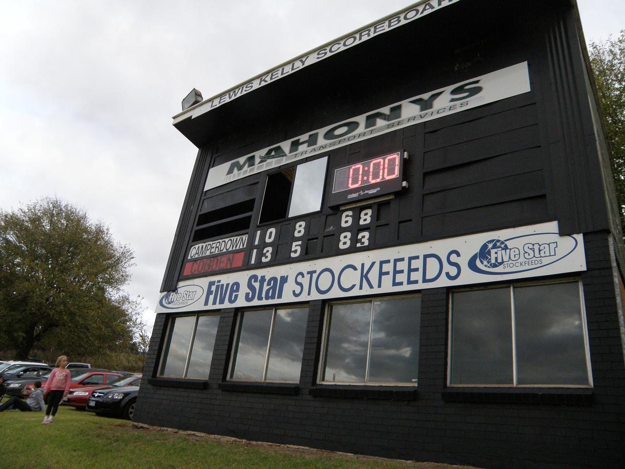 Journalist Paul Daffey mentioned the scoreboard in the 2009 edition of The Footy Almanac: The Camperdown Gentlemen’s Club, a group of former school mates, meet for one match a year at Camperdown’s Leura Oval. The gentlemen consist of farmers, teachers, policemen, ordinary blokes. They gather beneath the scoreboard and watch the Camperdown match while a radio raps out the AFL scores. After the match, the father of an old schoolmate in whose memory the gentlemen gather joins them around a bonfire to present an award for best on ground. It’s a day in the Irish tradition of emptying your heart of grief and making room for the good times.