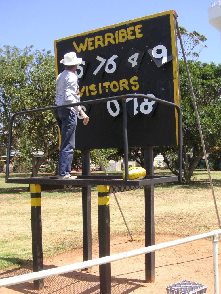 There have been major renovations to the Werribee South scoreboard. Back in 2010 it had a black and white paint scheme. And some rust.