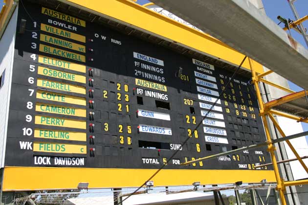 It turned out to be the perfect day to photograph the WACA scoreboard. Day three of the Women’s Ashes Series Test match. No ads and the match-changing partnership between Jennifer Gunn and Charlotte Edwards was taking shape. Actually the match changed quite often – the only constants were pitiful top order batting from Australia, fine fast bowling from both teams and Ellyse Perry.