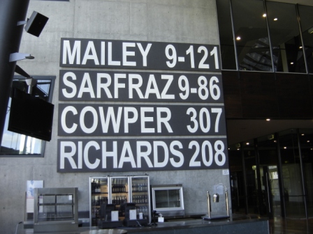 Cowper’s score is part of a scoreboard sculpture by Mathew Greentree within the Members’ Atrium of the MCG.
