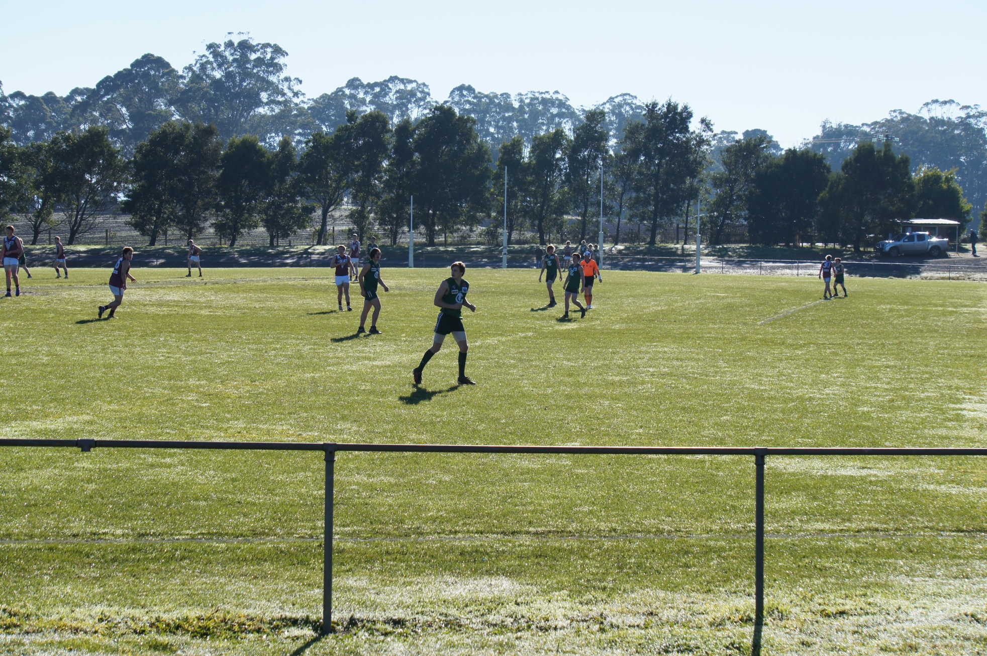 Gembrook-Cockatoo and Mount Evelyn 3rds players kicking the dew off the turf in 2012.