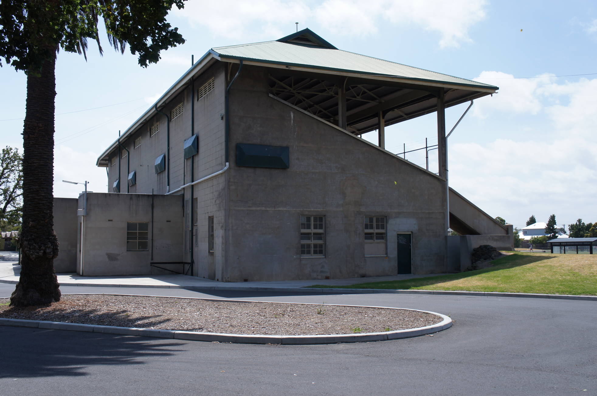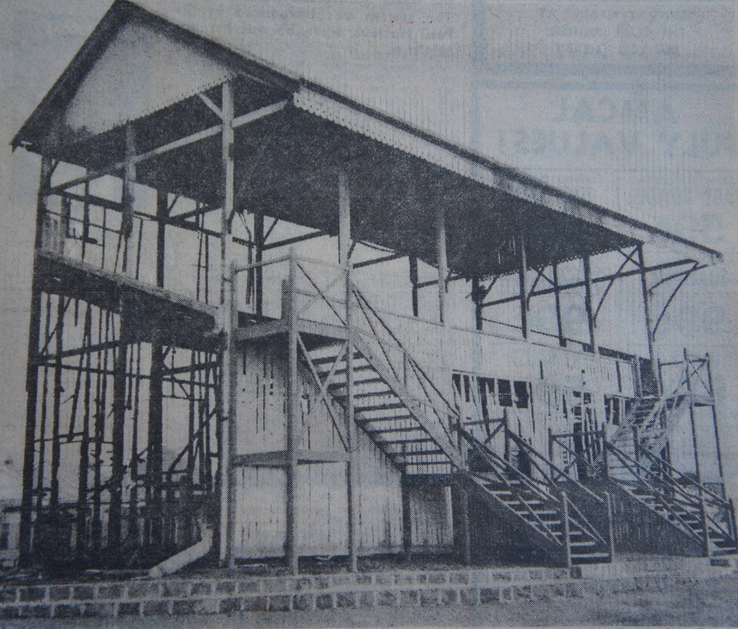 The same stand after it was destroyed by a deliberately lit fire on 17 July 1975 (photo: Brunswick Sentinel).