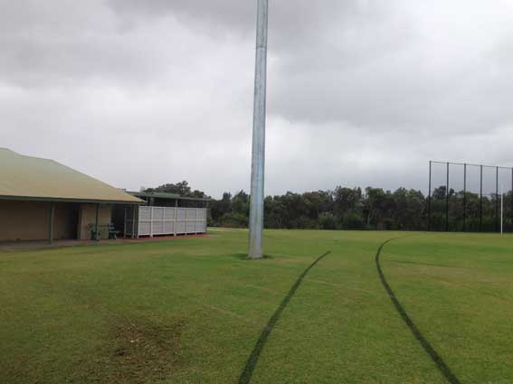 Clifton Park has a very nice surface but games must be interesting as one wing abuts thick bushland and the ball must disappear into it regularly. There’s a net behind the goals at one end to guard against lost balls and lost time.