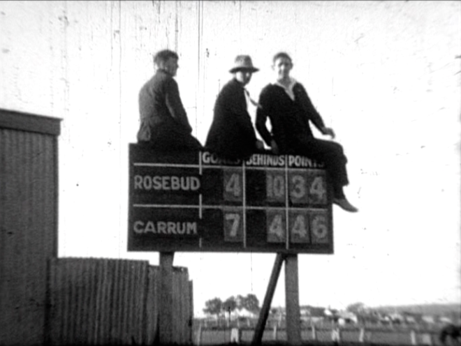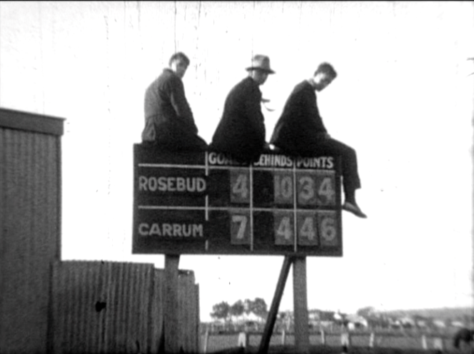 Not sure where guys kept their scoreboard numbers and how they kept their balance but they probably had the best view of the 1932 Grand Final between Rosebud and Carrum , played at Dromana.
