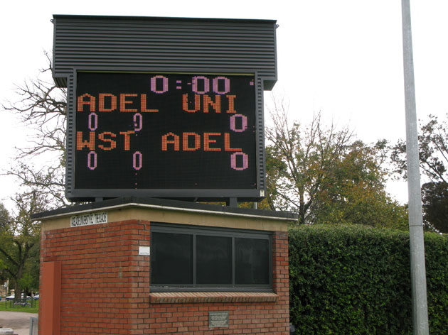 I was very pleased to see some animation on the scoreboard at Park 10 when I visited in June 2013… poised for the start of a game but with no players, umpires, spectators or scoreboard attendants in sight. It’s the home of the Adelaide University Football Club. The Blacks are quite clear about their place in the scheme of things as this snippet from the club website shows…
