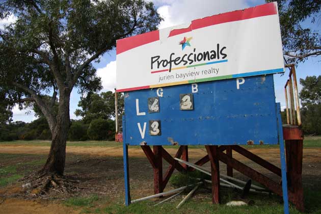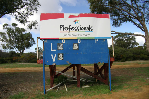 There’s a nice footy ground with a colourful scoreboard but no senior footy team. The Leeman Marlins joined the Central Midlands Football League in 1992 but folded in 2008 after a number of seasons struggling to find enough players.