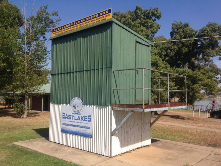 On Good Friday this year I took the opportunity to visit Lake Albert with my wife and two daughters. An artificial lake in the southern Wagga suburb of the same name, it is a virtual cesspool riddled with blue-green algae, rendering it mostly incompatible with human activity. It is surrounded, though, by Apex Park, which sports a fantastic playground and extensive parklands. So, it isn’t a completely worthless destination for a public holiday sojourn. While the children occupied themselves I wandered 50 metres up the hill away from the beautiful water to the local footy ground and was instantly transported back to a simpler time.