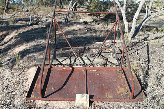 I am a scoreboard man and picked a spot on the far wing where I thought one might have been and wound my way through the centre of the oval thankful it wasn’t summer when snakes were active. The scoreboard had been pushed over but it was there. A neat metal structure with a timber bench for the attendant – I wanted to share my excitement but couldn’t get mobile reception so enjoyed it alone. Then I found a numberplate some metres behind the board – joy.