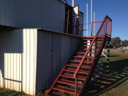 The scoreboard itself is the traditional elevated tin shed-type, with an enclosed bottom floor, handy for storage. It also has the timekeepers clock, replacing old clock on the other side of the ground. These days the old timekeeper’s box serves little more purpose than another set of stairs for kids to play on, and a spot to serve snags off the barbie after Thursday night training.