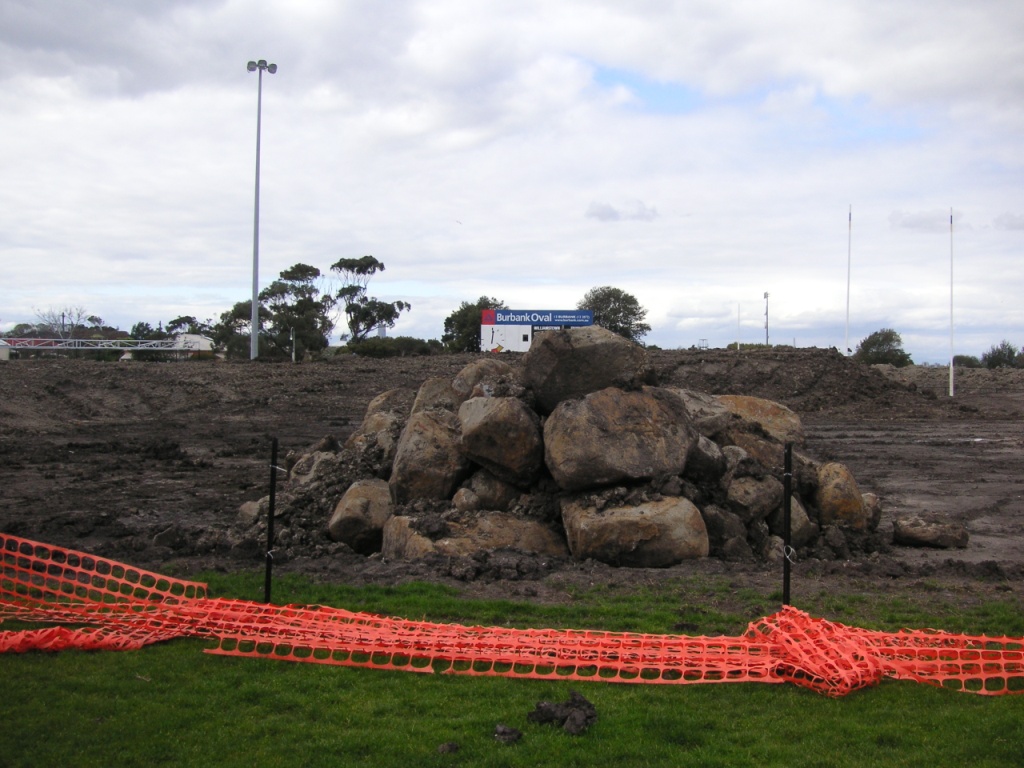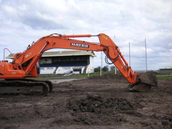 What’s a footy ground look like when it’s stripped naked? When it’s dug up, piped-in to local stormwater, re-laid?