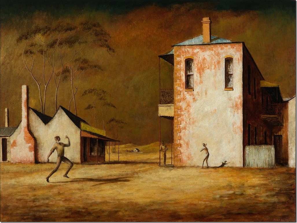 The bowler’s action reminded me of the bowler in Russell Drysdale’s classic painting The Cricketer.
