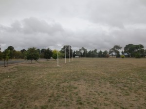 Meredith’s Pioneer Park has three scoreboards. Elaine had none that we could find. But, then again, the gates were closed. And the clubrooms and all the shipping containers were locked. Unlike Meredith it was not a game day.