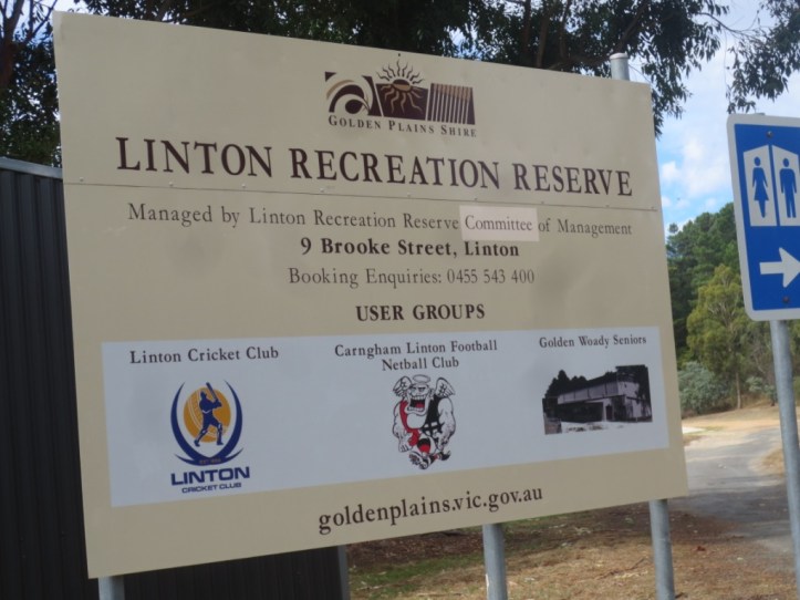 Linton is a little goldfields town (population 580), about 30 kilomentres west of Ballarat (population 100, 000), a very big goldfields town.