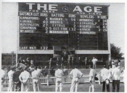 1. That scoreboard was built for the 1955/56 season, when the Sheffield Shield games were played at St Kilda. MCG was unavailable for that and the following season due to the Olympics.