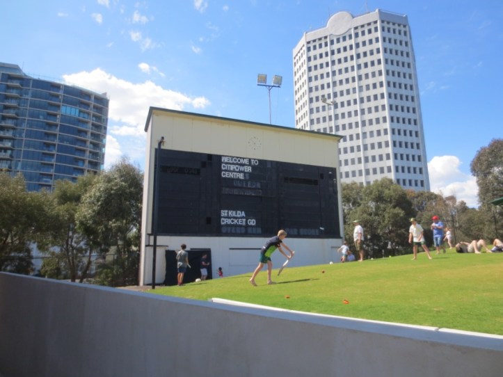 • Also: Watching the game, and the scoreboard at Junction Oval yesterday, I dreamily imagined the new scoreboard showing – during the innings breaks, perhaps – historic images of the heritage-listed scoreboard and of the oval itself. And then I imagined other grounds doing something similar. New technology showcasing old times. Cheers.