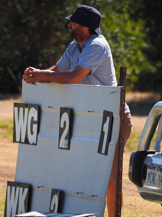 Tim Harrington comes from a family that’s good at making things. So with a bit of panelling, a couple of tech screws and star pickets, some hooks and wire he fashioned a temporary scoreboard for Darkan and its occasional games of footy. Eight years later it’s still standing and Tim is the scoreboard attendant… with some part-time helpers.