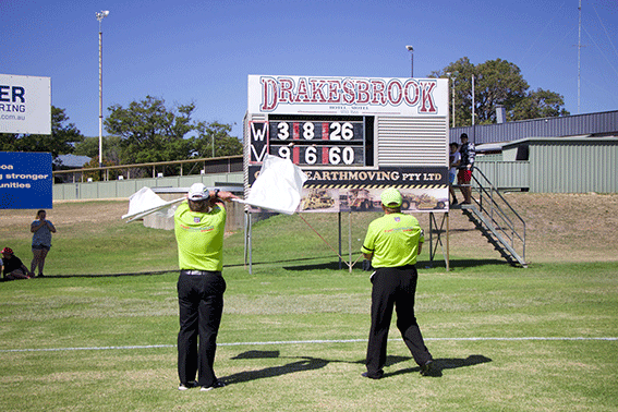 We were there for round one 2019 and watched Kade (the regular attendant) and his helper Jack in action in the swinging shutter* operated scoreboard. At three quarter time of the colts the goal umpires appeared. A mistake had been made. A behind to Waroona had been given to the visitors Mundijong Centrals. The score was adjusted, the flags waved and the scoreboard attendants were given a little ticking off. Centrals went on to win by 38 points.