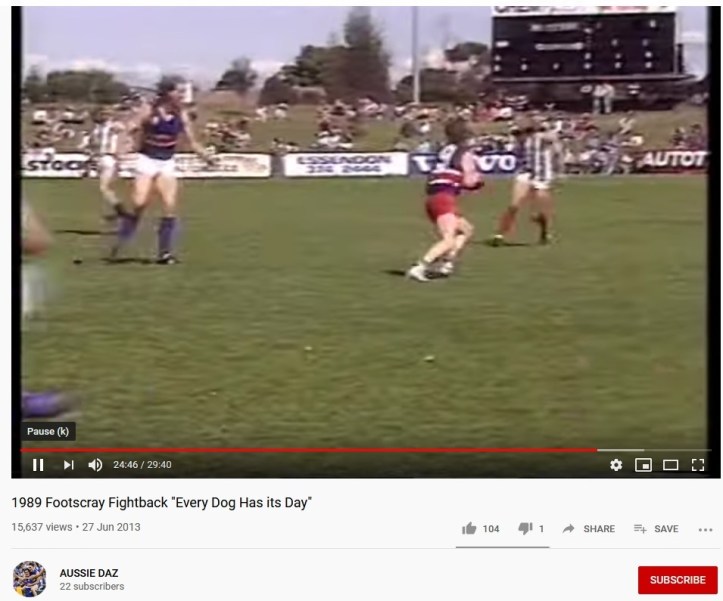 Said our contributor: “I was randomly watching a video on Footscray and it went to a game at Skinner Reserve in 1989 and there she was: the beautiful big Skinner Reserve scoreboard on the outer wing.”