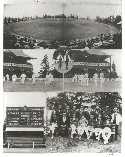 Alas, England batted first, with Joe Hardstaff and Wilfred Rhodes making centuries. Tasmanian skipper Kenny Burn made 112 in the home team’s second innings. The three day match was drawn: England 455, Tasmania 113 and 8/317. Full scorecard.