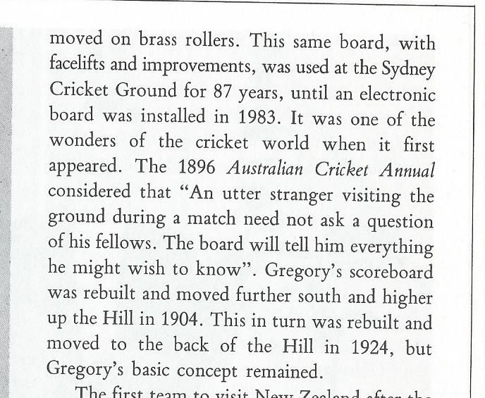 Ned Gregory has at least two claims to cricket immortality: he made the first duck in Test cricket in 1877 and, in his role as SCG curator, he made the classic scoreboard which stood proud for 87 years, from 1896 to 1983. A third claim is his success in using Bulli soil for the SCG pitches. This soil not only rolled out hard and fast, but had outstanding adhesive and water resistant properties. After the grateful adoption of his Bulli soil
