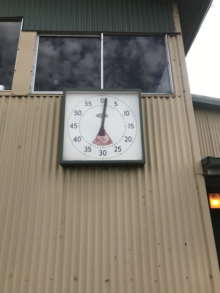 A website visitor, Evan Cassidy, sent an email: “Do you have any photos of the old fashioned time clocks that used to appear at grounds, which show time on?”