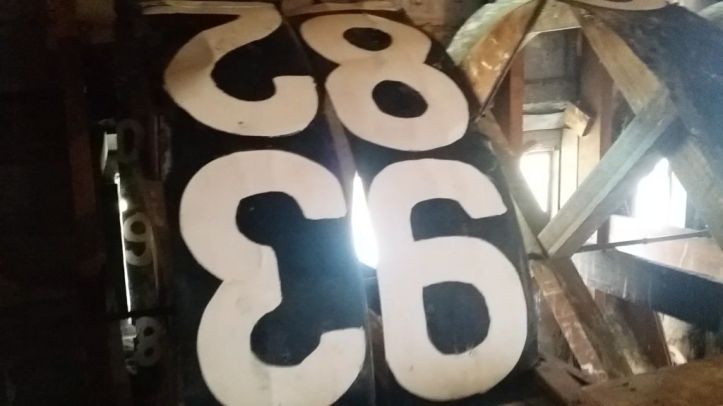 Inside the Kermandie scoreboard at Geeveston. They don’t make ’em like that anymore. Photo by Matt Cramond