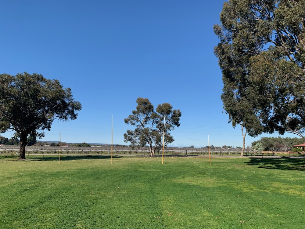 It sits in a beautiful location surrounded by vineyards and even features an extra set of goal posts if you need to have a shot while a game is going on.