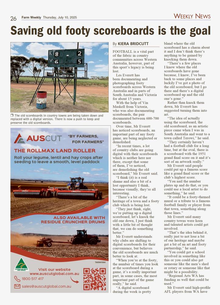 July 22, 2025July 22, 2025 Vin Maskell Farm Weekly and the art of old scoreboards A big thank you to Farm Weekly and journalist Kiera Briddcut for running this story on July 10, 2025. Share this: Click to share on Facebook (Opens in new window) Facebook Click to share on X (Opens in new window) X Click to email a link to a friend (Opens in new window) Email Like Loading... Related