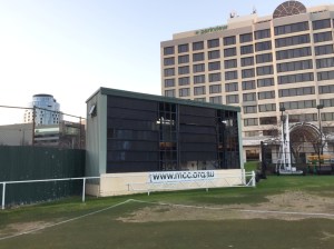 Behind the scoreboards